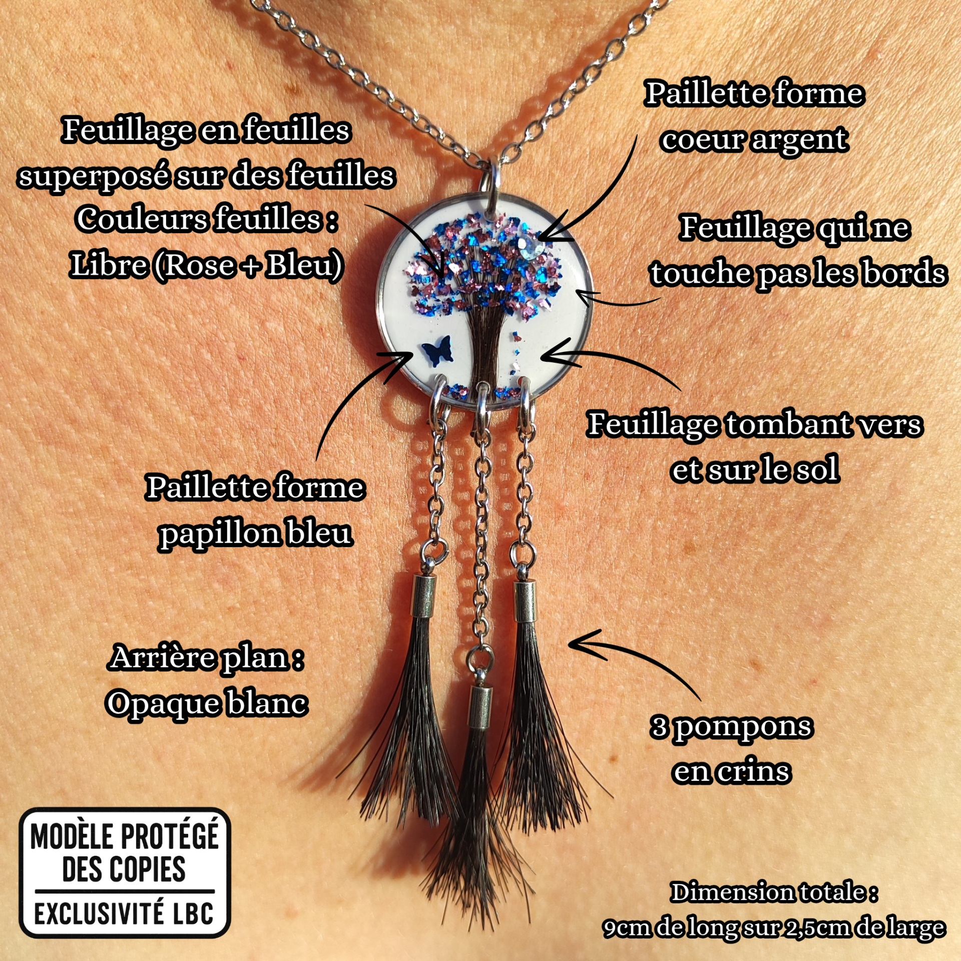 Laetitia Barbier Création vous présente son modèle de collier en exclusivité : « L’Arbre des rêves », une pièce originale et symbolique qui revisite l'attrape rêve et l'arbre de vie. Ce modèle est composé d’un pendentif de 2.5cm de diamètre et d’une structure complète mesurant 9cm de long, réalisé avec une résine de haute qualité et une base en acier inoxydable argenté. Vous allez pouvoir personnaliser ce modèle pour créer un arbre de vie unique, qui vous représente et est rempli de souvenirs qui vous appartiennent.